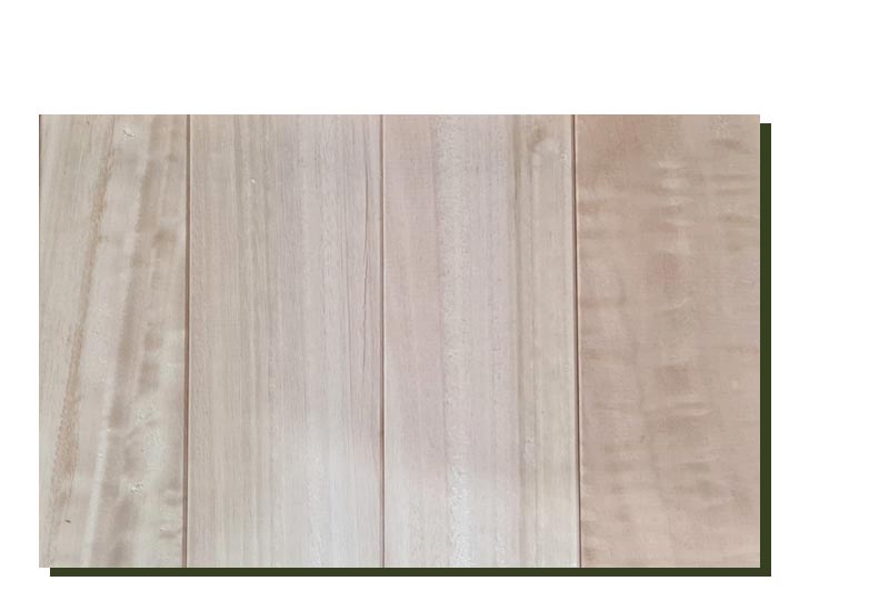 - Textura homogénea, que facilita cepillados, lijados y tratamientos superficiales especiales (cepillado, envejecido, efecto rústico).